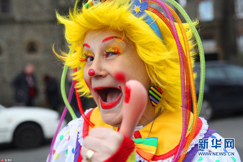 當(dāng)?shù)貢r(shí)間2月4日,英國(guó)倫敦,人們扮成小丑的模樣聚集在圣三一教堂,為英國(guó)“小丑之父”約瑟夫-格里馬爾迪(1778-1837)舉辦紀(jì)念會(huì)。(圖片來(lái)源:東方IC)
