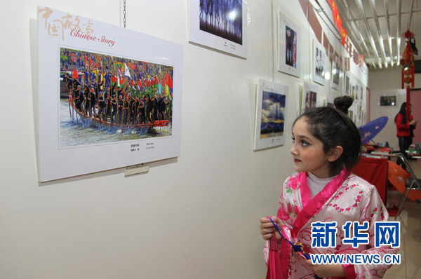 一名學生在欣賞“中國故事”圖片展。新華網(wǎng)發(fā)(李良勇攝)