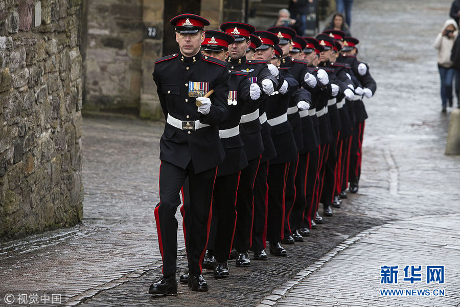 英國皇家炮兵在愛丁堡城堡鳴響21響禮炮 紀(jì)念女王登基66周年