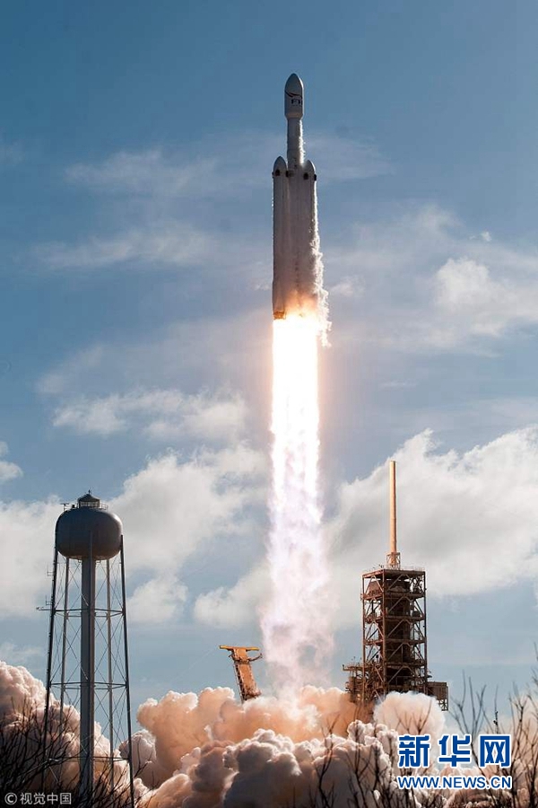 當(dāng)?shù)貢r間2018年2月6日,美國佛州卡納維拉爾角,美國重型運(yùn)載火箭“獵鷹重型”6日攜帶一輛特斯拉跑車發(fā)射升空。(圖片來源:視覺中國)