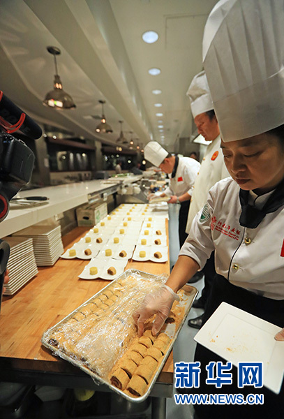 參加活動的“中華老字號”企業(yè)全聚德、東來順的頂級廚師為現場觀眾展示了蓑衣黃瓜、蒙面刀工等烹飪技巧,龍須拉面細如發(fā)絲,用打火機靠近,瞬間呈現出遇火即燃的神奇一幕。中國廚師們的精湛技藝令來賓贊嘆不已。