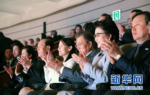 據(jù)當?shù)孛襟w報道,演出開始前文在寅與朝鮮高級別代表團在休息室進行了簡短交談。金永南說,此訪中代表團和文在寅總統(tǒng)交換了意見,為北南雙方經常見面創(chuàng)造了機會。文在寅表示,這次的會面非常珍貴,希望南北齊心協(xié)力,讓這次會面播下的火種變?yōu)樾苄苋紵幕鹁妗?/p>