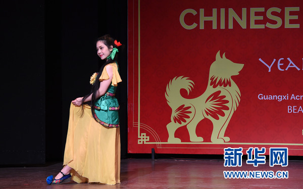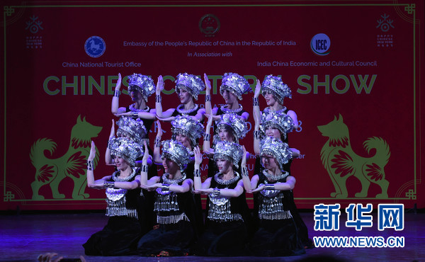 2月9日,在印度首都新德里,2018“歡樂(lè)春節(jié)”活動(dòng)演出現(xiàn)場(chǎng),中國(guó)演員在表演舞蹈。新華網(wǎng)發(fā)(張迺杰攝)