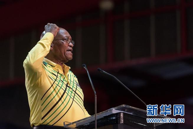2月14日,南非總統(tǒng)雅各布·祖馬發(fā)表全國講話時宣布辭職。這是祖馬在南非約翰內(nèi)斯堡舉行的非洲人國民大會(非國大)第54屆全國代表大會上發(fā)言的資料照片(2017年12月16日攝)。新華社發(fā)(戴維·奈克爾攝)