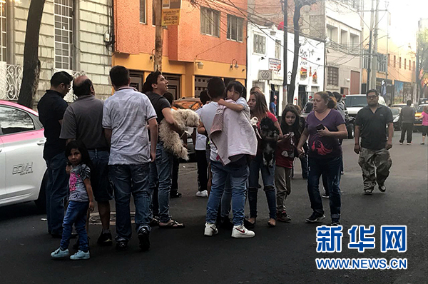 2月16日,人們?cè)谀鞲缡锥寄鞲绯且簧虉?chǎng)前的廣場(chǎng)避險(xiǎn)。中國(guó)地震臺(tái)網(wǎng)正式測(cè)定:2月17日7時(shí)39分,在墨西哥(北緯16.60度,西經(jīng)97.75度)發(fā)生7.1級(jí)地震,震源深度10公里。新華社記者許睿攝2018-02-17 09:00:28
