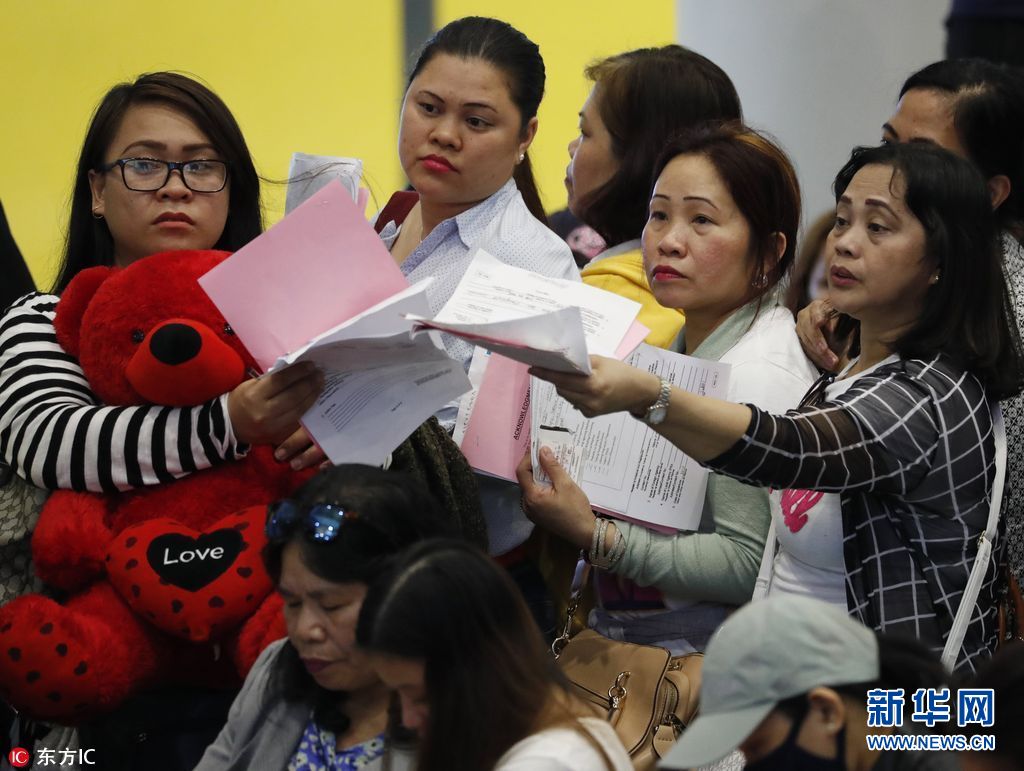 當(dāng)?shù)貢r(shí)間2018年2月21日,菲律賓馬尼拉,從科威特返回的菲律賓海外勞工抵達(dá)馬尼拉國(guó)際機(jī)場(chǎng)。據(jù)外媒報(bào)道,宿霧太平洋航空公司為至少396名海外菲律賓工人提供空運(yùn)支持,助其免費(fèi)搭乘飛機(jī)回家。據(jù)悉,菲律賓政府已下令禁止民眾前往科威特務(wù)工。據(jù)悉,菲律賓總統(tǒng)杜特爾特稱,近來(lái)有在科威特打工的菲律賓女傭因不堪虐待或性侵選擇自殺。(圖片來(lái)源: 東方IC)