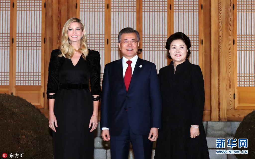 當地時間2018年2月23日,韓國首爾,韓國總統(tǒng)文在寅夫婦在青瓦臺設晚宴,歡迎伊萬卡來訪。美國總統(tǒng)特朗普之女、總統(tǒng)助理伊萬卡率領的美國代表團23日抵韓進行訪問,并將出席平昌冬奧會閉幕式。(圖片來源:東方IC)