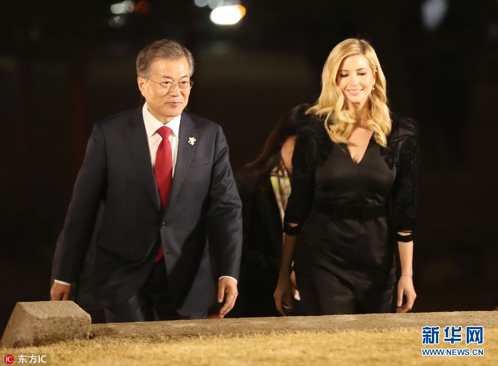 當?shù)貢r間2018年2月23日,韓國首爾,韓國總統(tǒng)文在寅夫婦在青瓦臺設晚宴,歡迎伊萬卡來訪。美國總統(tǒng)特朗普之女、總統(tǒng)助理伊萬卡率領的美國代表團23日抵韓進行訪問,并將出席平昌冬奧會閉幕式。(圖片來源:東方IC)