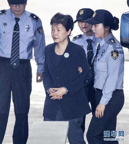 這是2017年5月23日韓國前總統(tǒng)樸槿惠(中)抵達首爾中央地方法院的資料照片。新華社發(fā)(李相浩攝)