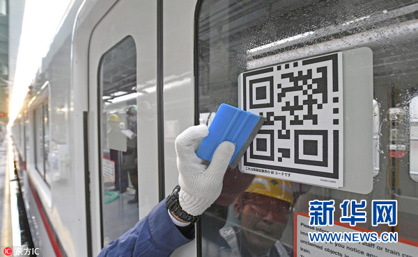 2017年11月24日,日本東京,地鐵列車門上的二維碼,一旦乘客發(fā)現(xiàn)任何異常,可通過掃描二維碼來通知地鐵工作人員。