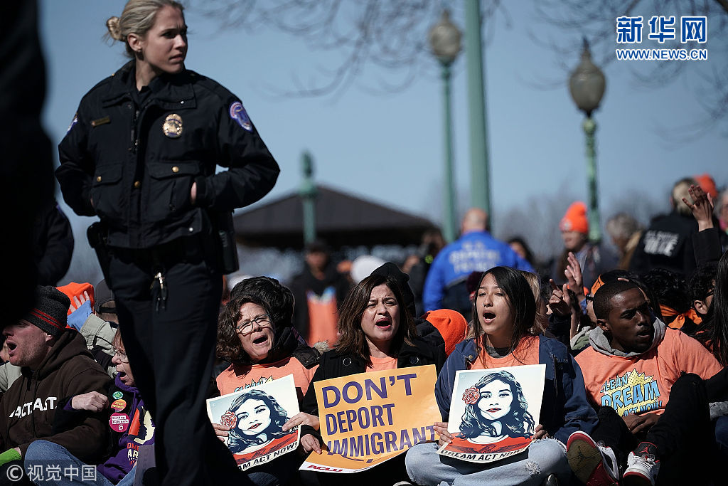 當(dāng)?shù)貢r(shí)間2018年3月5日,美國(guó)華盛頓,移民活動(dòng)家在國(guó)會(huì)山舉行集會(huì),抗議特朗普終結(jié)“夢(mèng)想法案”計(jì)劃。(圖片來源:視覺中國(guó))