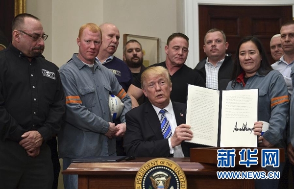 新華社華盛頓3月8日電(記者金旼旼 高攀)美國(guó)總統(tǒng)特朗普8日簽署公告對(duì)進(jìn)口鋼鐵和鋁產(chǎn)品征收高關(guān)稅。美國(guó)的這一最新貿(mào)易保護(hù)措施已在美國(guó)國(guó)內(nèi)以及國(guó)際社會(huì)遭到廣泛反對(duì)。