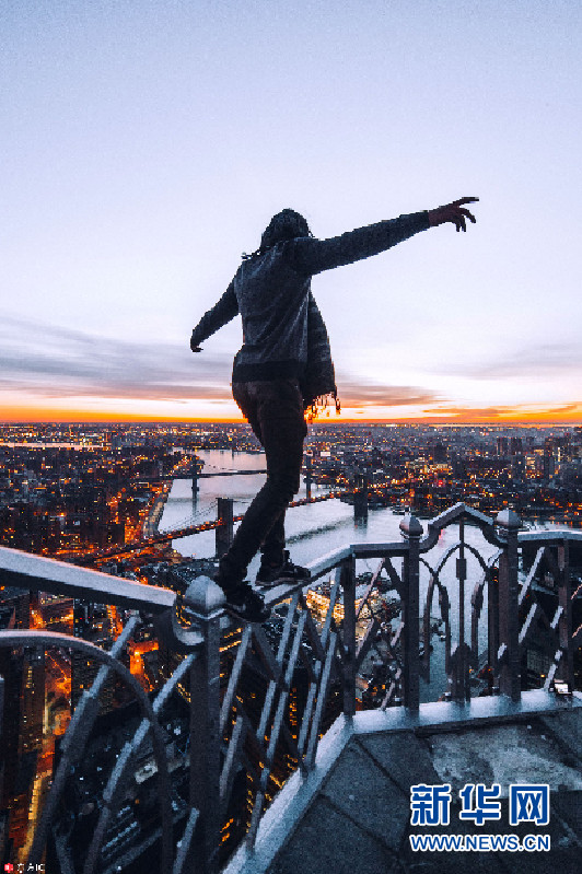 美國男子城市之巔飛檐走壁,將紐約摩天樓頂變游樂場。攝影師SVVK拍攝下了這些照片。他表示因為懷著對冒險和紐約城市的熱愛,同LiveJN一起拍攝下了這些照片。(圖片來源:東方IC)