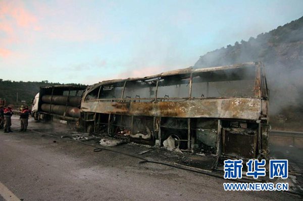電視臺(tái)現(xiàn)場畫面顯示,大巴車嚴(yán)重?fù)p毀,只剩焦黑的車架。一位幸存乘客說,事發(fā)時(shí)車上乘客大多在睡夢中。有乘客打碎車窗逃生,未能逃出的乘客則大多遭遇不幸。
