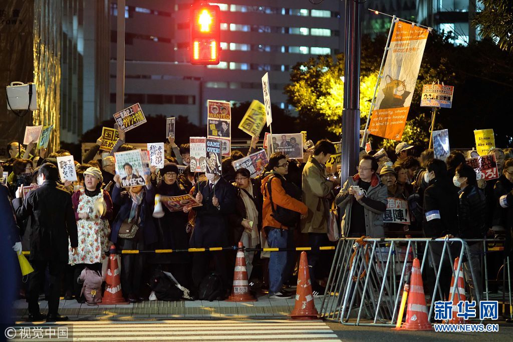 日本民眾首相府邸前游行 抗議安倍晉三夫婦