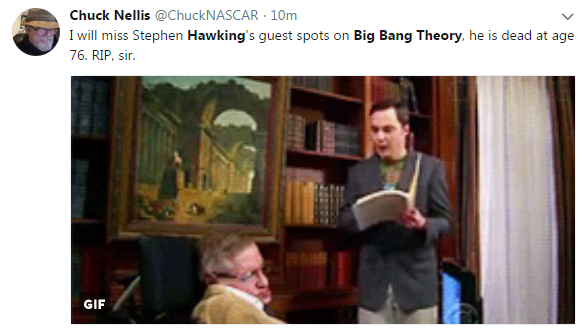 有網(wǎng)友說(shuō):“至少我們能在《生活大爆炸》中,反復(fù)看到霍金教授?!?↑