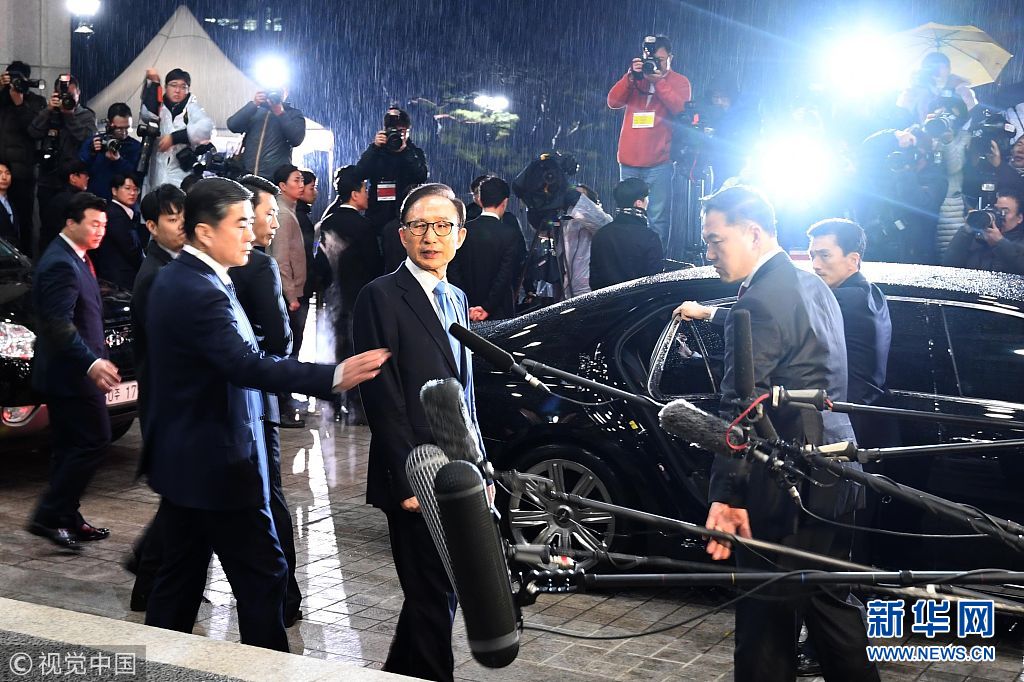 3月15日,韓國首爾,韓國前總統(tǒng)李明博在接受了檢方超過21小時的調(diào)查后返家。他涉嫌包括受賄、挪用公款等在內(nèi)的20多項罪名,同時也是韓國第五位被檢方調(diào)查的前總統(tǒng)。(圖片來源:視覺中國)