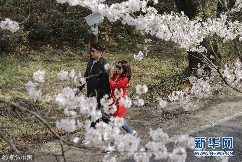 3月30日,韓國河?xùn)|郡,當(dāng)?shù)貦鸦ㄊ㈤_,吸引游人觀賞。(圖片來源:視覺中國)