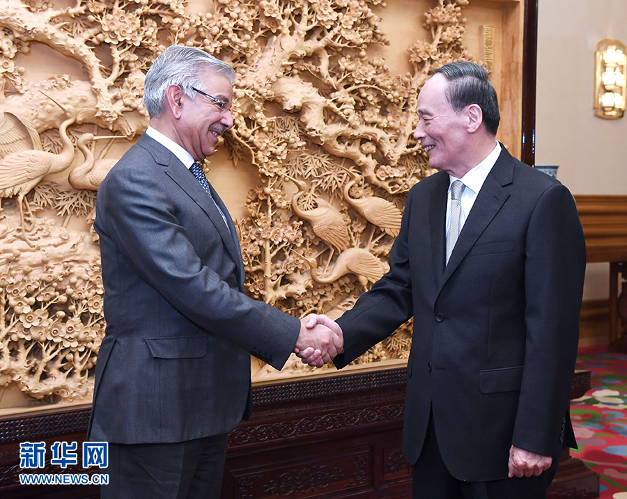 4月24日,國家副主席王岐山在北京中南海會見巴基斯坦外長阿西夫。新華社記者饒愛民攝
