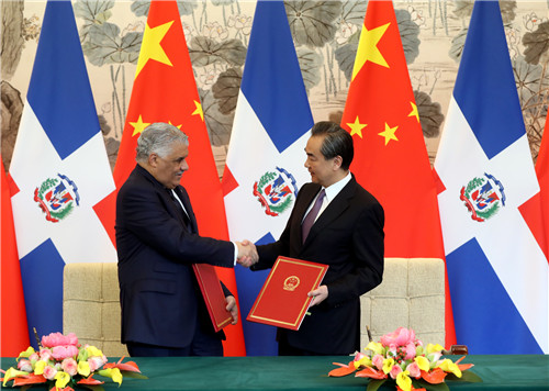 王毅表示,剛才我同巴爾加斯外長正式簽署了《中華人民共和國和多米尼加共和國關于建立外交關系的聯(lián)合公報》。就在半個小時之前,多米尼加發(fā)布總統(tǒng)公告,宣布承認一個中國原則,與臺灣地區(qū)斷絕所謂“外交關系”。這是中多兩國建交的基本前提。在我們簽署的這份建交公報中,多米尼加共和國政府承認世界上只有一個中國,中華人民共和國政府是代表全中國的唯一合法政府,臺灣是中國領土不可分割的一部分。據此,中華人民共和國從即日起和多米尼加共和國建立大使級外交關系。