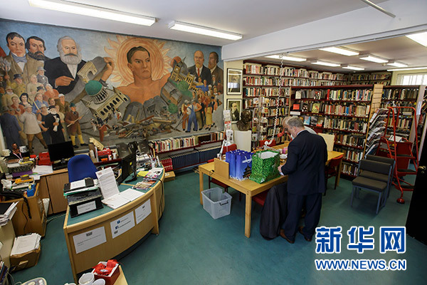 戈登帶領(lǐng)記者參觀圖書(shū)館二樓的閱覽室、一樓的會(huì)議室,以及收藏重要資料的地下檔案室。一排排書(shū)架上,整齊擺放著19世紀(jì)50年代以來(lái)各國(guó)出版的馬克思、恩格斯、列寧等革命導(dǎo)師的著作以及馬克思主義研究書(shū)籍。