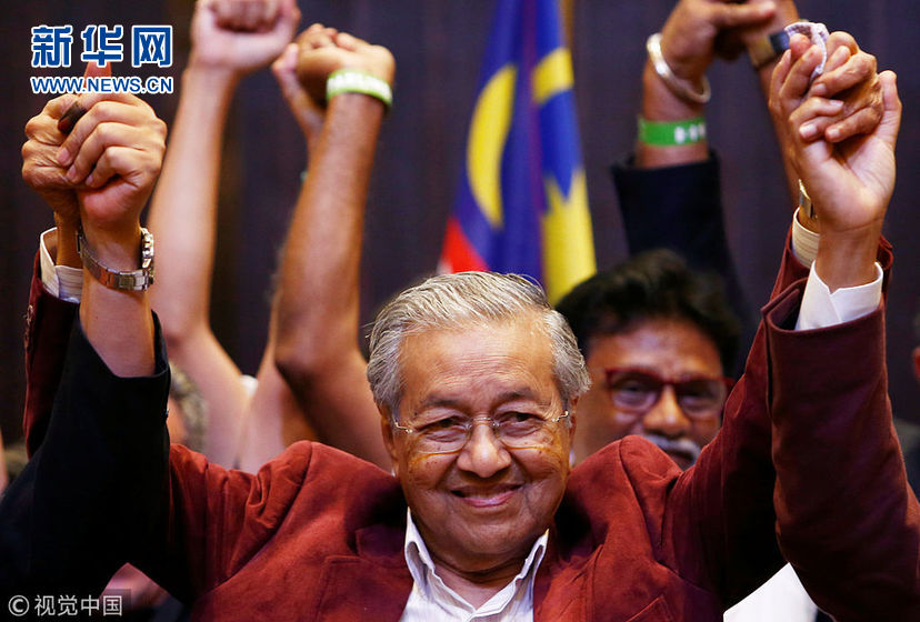 當(dāng)?shù)貢r(shí)間2018年5月9日,馬來(lái)西亞吉隆坡,馬哈蒂爾代表希望聯(lián)盟召開新聞發(fā)布會(huì)。9日,馬來(lái)西亞國(guó)會(huì)大選結(jié)束。10日凌晨官方點(diǎn)票結(jié)果顯示,前總理馬哈蒂爾(Mahathir)帶領(lǐng)的希望聯(lián)盟取得112席簡(jiǎn)單多數(shù)國(guó)會(huì)議席,足以籌組政府及勝出大選,并終結(jié)執(zhí)政國(guó)民陣線長(zhǎng)達(dá)60年的管治。現(xiàn)總理納吉布領(lǐng)導(dǎo)的國(guó)民陣線僅獲得76席。(圖片來(lái)源:視覺中國(guó))