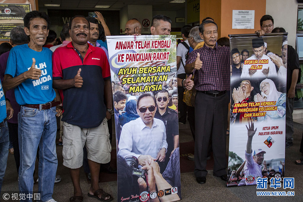 2018年5月11日訊,馬來西亞新當選總理馬哈蒂爾表示,最高元首已經(jīng)同意特赦前副總理安瓦爾,希盟方面將盡快推動有關程序。安瓦爾以前頗受馬哈蒂爾賞識和提攜,被外界視為馬哈蒂爾的接班人。然而,兩人后來鬧僵,馬哈蒂爾1998年革除安瓦爾的副總理之職。隨后幾年間,安瓦爾因貪腐和雞奸罪名入獄。路透社報道,根據(jù)馬哈蒂爾與安瓦爾“談妥”的條件,馬哈蒂爾贏得選舉后將向最高元首尋求特赦安瓦爾,待安瓦爾出獄后,便退位讓賢,改由安瓦爾出任總理。不過,馬來西亞法律規(guī)定出獄者5年內(nèi)不得參政,即便獲特赦也要參加國會議席補選才有望重返政壇。(圖片來源:視覺中國)