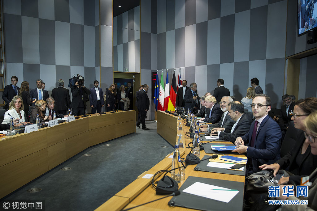 當(dāng)?shù)貢r(shí)間2018年5月15日,比利時(shí)布魯塞爾,伊朗外長(zhǎng)扎里夫當(dāng)天在布魯塞爾會(huì)見(jiàn)了歐盟外交與安全政策高級(jí)代表莫蓋里尼,隨后與伊核協(xié)議簽署方三個(gè)歐洲簽署國(guó)德國(guó)、法國(guó)和英國(guó)的外長(zhǎng)舉行會(huì)談。會(huì)后,扎里夫?qū)σ晾室了固m通訊社稱(chēng),雙方為了保護(hù)伊核協(xié)議剩余協(xié)議締約國(guó)的利益,進(jìn)行了“良好的會(huì)談”,目前正處在“正確軌道上”。至于會(huì)談的具體內(nèi)容,與會(huì)各方均未透露。(圖片來(lái)源:視覺(jué)中國(guó))