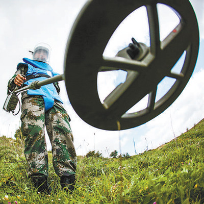 中國維和部隊(duì)軍人在黎巴嫩南部進(jìn)行清排探測(cè)作業(yè)。資料照片(新華社發(fā))