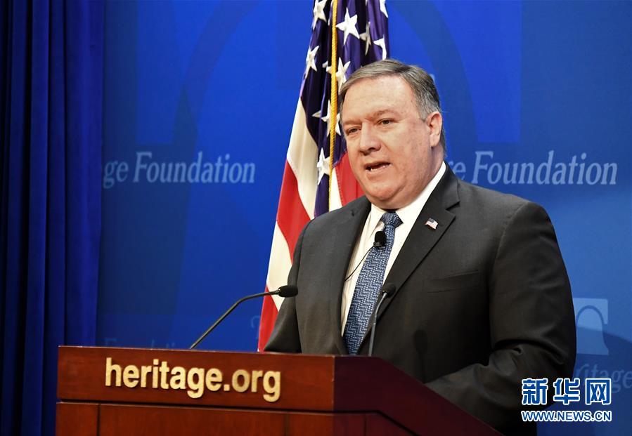 5月21日,美國(guó)國(guó)務(wù)卿蓬佩奧在華盛頓的美國(guó)智庫(kù)傳統(tǒng)基金會(huì)發(fā)表演講。美國(guó)國(guó)務(wù)卿蓬佩奧當(dāng)日表示,伊朗如果不改變當(dāng)前路線,將受到美國(guó)“最嚴(yán)厲的制裁”。 新華社記者楊承霖?cái)z