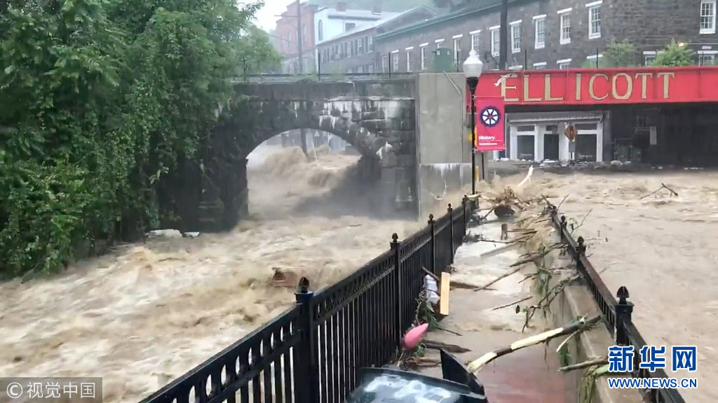 ?。ㄒ曨l截圖)5月27日,美國馬里蘭州埃利科特城遭洪水侵襲。(圖片來源:視覺中國)