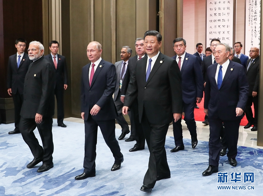 新華社青島6月10日電(記者孫奕、溫馨)上海合作組織成員國元首理事會第十八次會議小范圍會談10日在青島國際會議中心舉行。國家主席習(xí)近平主持。印度總理莫迪、哈薩克斯坦總統(tǒng)納扎爾巴耶夫、吉爾吉斯斯坦總統(tǒng)熱恩別科夫、巴基斯坦總統(tǒng)侯賽因、俄羅斯總統(tǒng)普京、塔吉克斯坦總統(tǒng)拉赫蒙、烏茲別克斯坦總統(tǒng)米爾濟約耶夫出席會議。各成員國領(lǐng)導(dǎo)人就上海合作組織發(fā)展以及重大國際和地區(qū)問題交換意見。