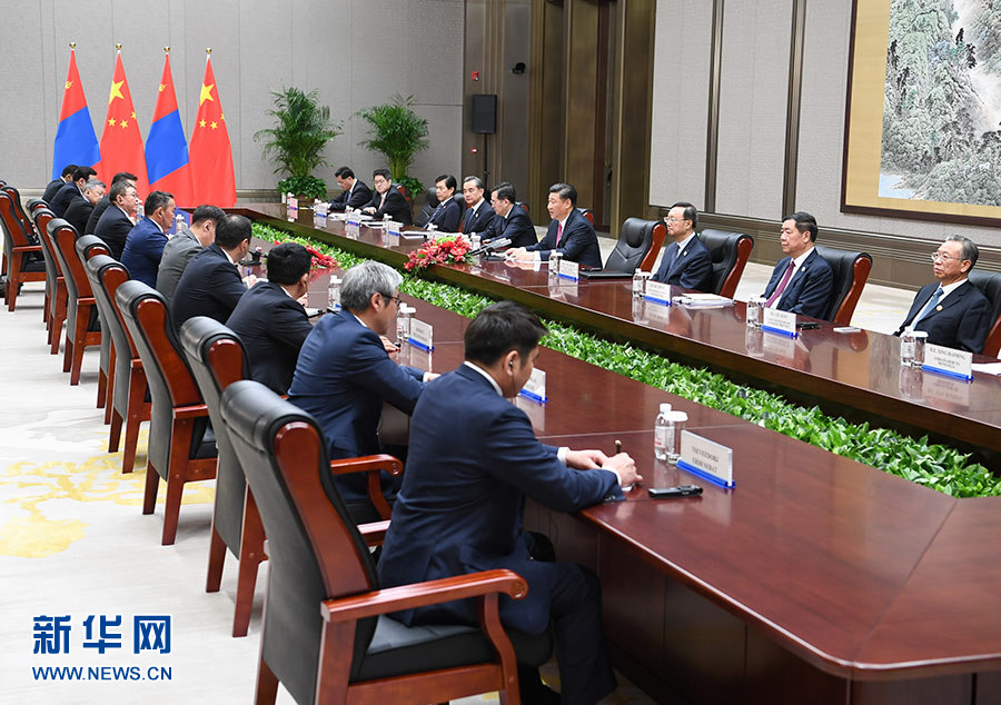 習(xí)近平指出,中蒙是山水相連的近鄰。中蒙關(guān)系發(fā)展符合兩國人民根本利益。我贊賞總統(tǒng)先生就任后多次表示重視中蒙關(guān)系,愿推動中蒙全面戰(zhàn)略伙伴關(guān)系不斷發(fā)展。中方愿同蒙方一道,本著互信、合作、共贏原則,把握機遇,排除干擾,扎實開展各領(lǐng)域交往和合作,豐富中蒙全面戰(zhàn)略伙伴關(guān)系內(nèi)涵,開創(chuàng)兩國合作新局面。