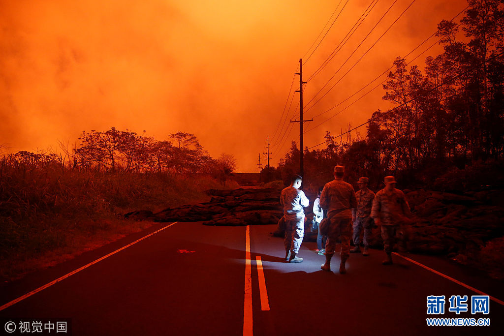夏威夷火山持續(xù)噴發(fā) 燃燒巖漿映紅夜空