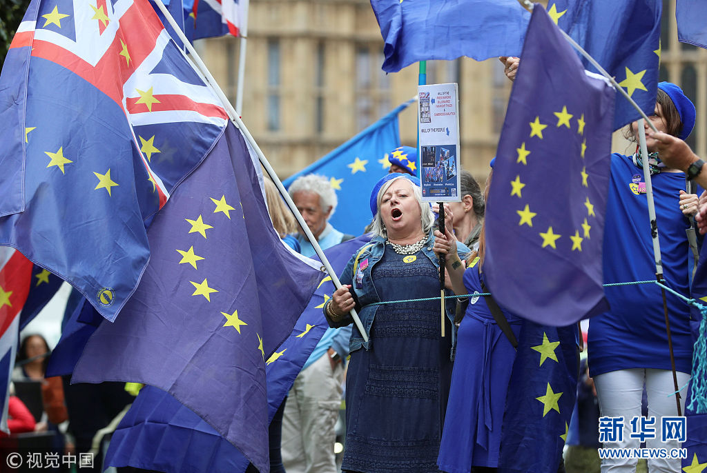 英國(guó)議會(huì)將就“脫歐法案”投票 反脫歐民眾游行示威