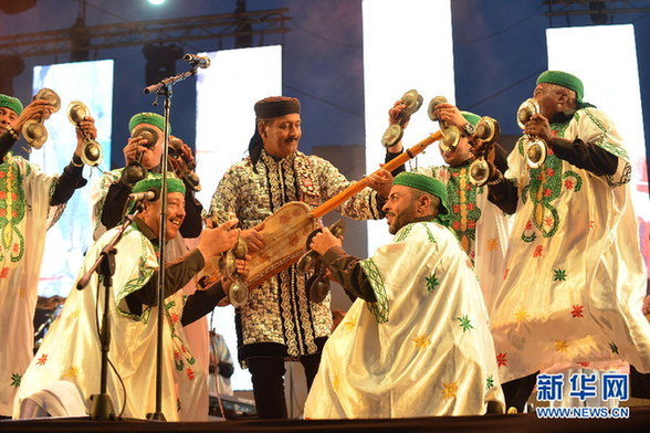 藝術家在第21屆格納瓦世界音樂節(jié)開幕式上演出。新華網(wǎng)發(fā) 艾薩攝