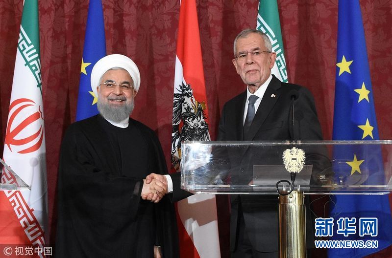 2018年7月4日,奧地利維也納,伊朗總統(tǒng)魯哈尼抵達(dá)奧地利進(jìn)行訪問,會晤奧地利總統(tǒng)范德貝倫。伊朗總統(tǒng)魯哈尼2日出發(fā)前往瑞士和奧地利訪問。他這次西歐行將重點(diǎn)討論伊朗核問題全面協(xié)議。(圖片來源:視覺中國)