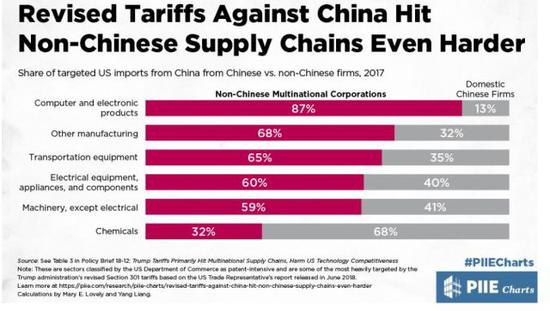 《華盛頓郵報》還介紹說,得出這一結(jié)論的是美國知名智庫“彼得森國際經(jīng)濟(jì)研究所”。耿直哥也查閱了該研究所的相關(guān)報告,發(fā)現(xiàn)其研究人員通過詳細(xì)的分析發(fā)現(xiàn),特朗普政府對中國發(fā)動的貿(mào)易戰(zhàn)會主要傷及的確實不是中國自己的企業(yè),而是美國以及美國盟友們所獨(dú)資持有的中國分公司。