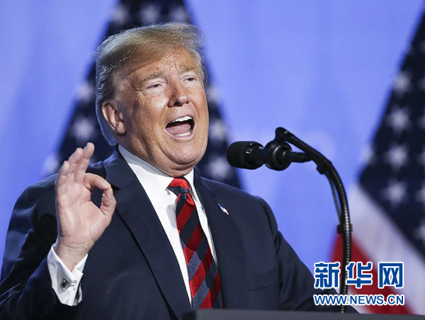 7月12日,在比利時(shí)布魯塞爾的北約總部,美國總統(tǒng)特朗普召開新聞發(fā)布會(huì)。新華社記者 葉平凡 攝