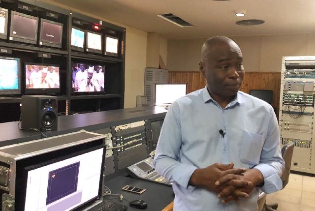 2018年7月19日,塞內(nèi)加爾國家電視臺新聞部主任達(dá)哈·巴在工作間接受記者采訪。(新華社記者孟娜攝)