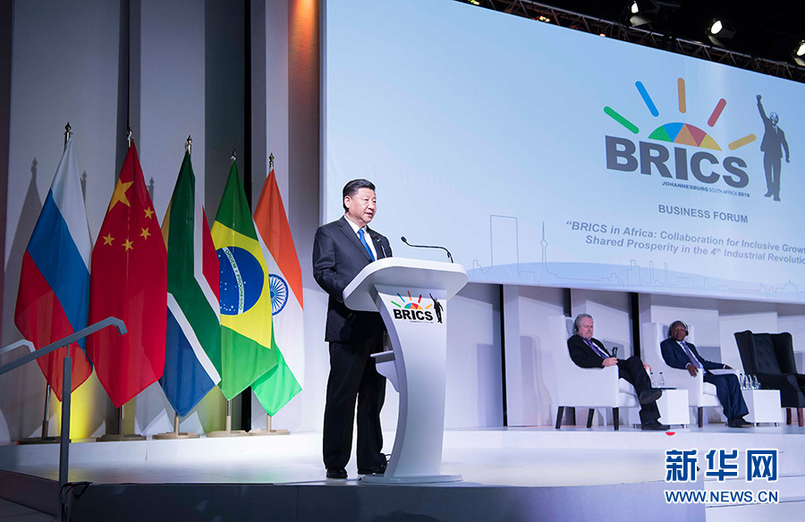 習(xí)近平強調(diào),未來10年,將是世界經(jīng)濟(jì)新舊動能轉(zhuǎn)換的關(guān)鍵10年,是國際格局和力量對比加速演變的10年,是全球治理體系深刻重塑的10年。我期待著同金磚國家領(lǐng)導(dǎo)人一道,推動金磚合作從約翰內(nèi)斯堡再出發(fā),把握發(fā)展機遇,合力克服挑戰(zhàn),為構(gòu)建新型國際關(guān)系、構(gòu)建人類命運共同體發(fā)揮建設(shè)性作用。