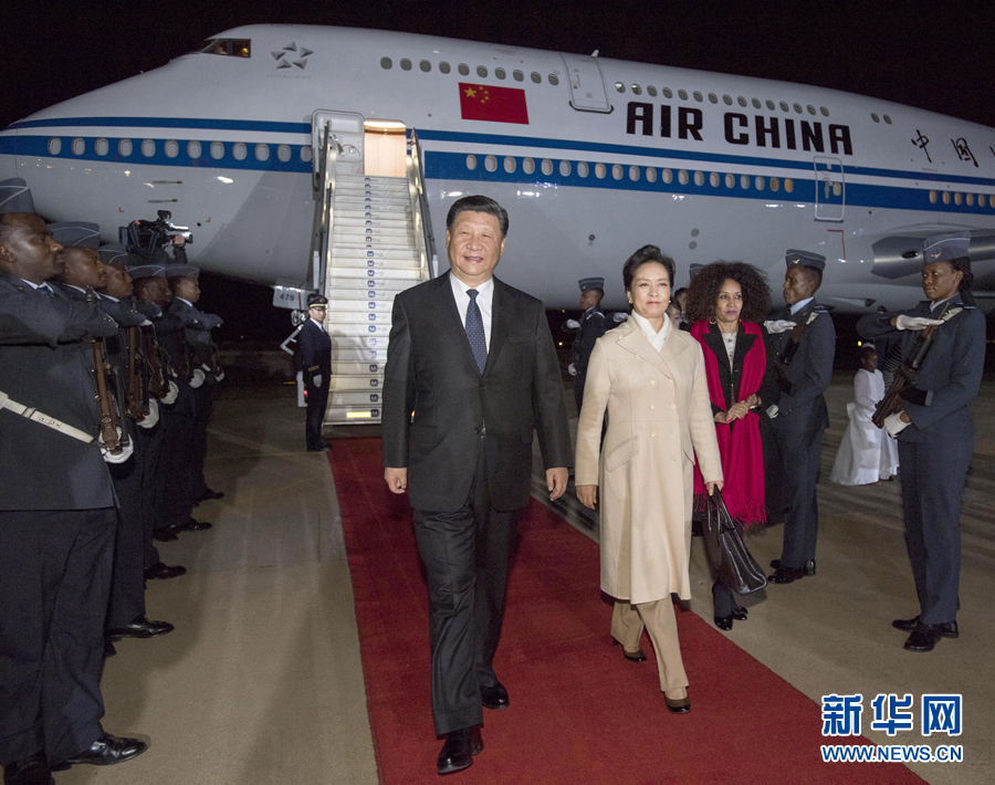 7月23日,國(guó)家主席習(xí)近平抵達(dá)比勒陀利亞,開始對(duì)南非共和國(guó)進(jìn)行國(guó)事訪問(wèn)。習(xí)近平和夫人彭麗媛在機(jī)場(chǎng)受到南非外長(zhǎng)西蘇魯?shù)日呒?jí)官員熱情迎接。新華社記者李學(xué)仁攝