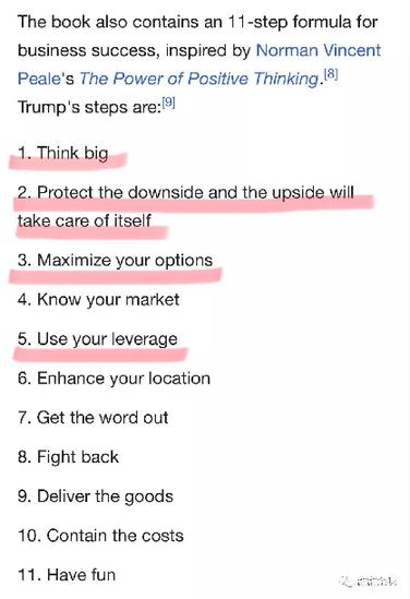 白宮及特朗普近期的表現(xiàn)看似散亂反復,實際上并非無跡可循。有個重要的樣本,就是特朗普本人的作品《交易的藝術》(The Art of the Deal)。他在書中回顧自己各種交易經(jīng)歷,總結出11條重要步驟。