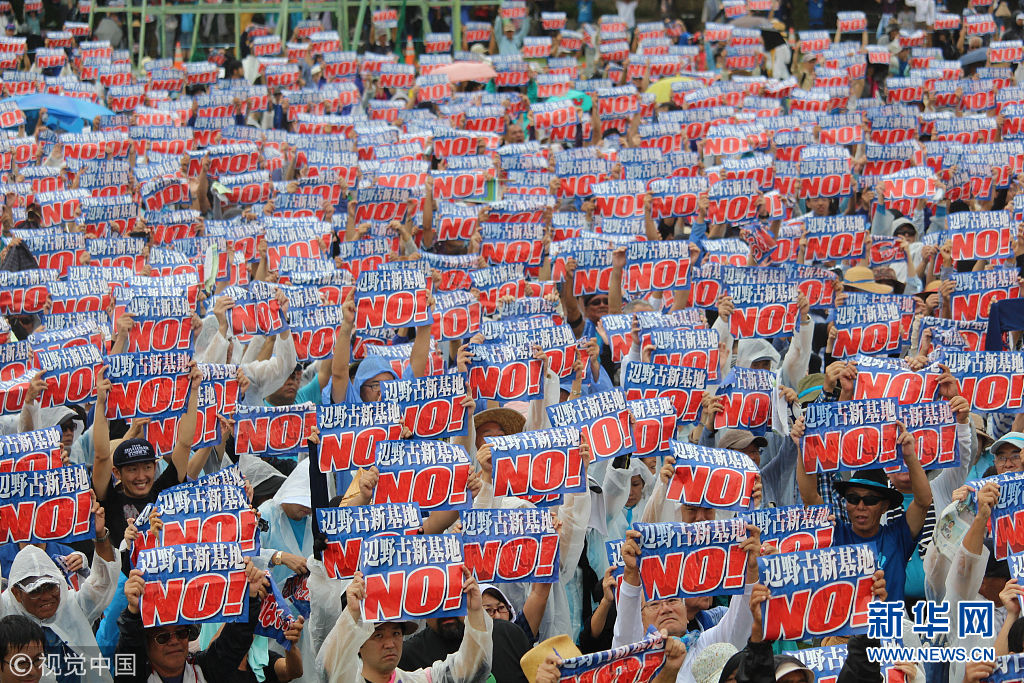 當(dāng)?shù)貢r(shí)間2018年8月11日,日本沖繩縣約7萬民眾8月11日在那霸市舉行大規(guī)模集會(huì),反對(duì)駐日美軍將普天間基地遷往名護(hù)市邊野古地區(qū),要求駐日美軍放棄在邊野古地區(qū)新建基地并立即關(guān)閉普天間機(jī)場(chǎng)。當(dāng)天,日本東京都、大阪府、福岡、北海道縣等地民眾也同時(shí)舉行集會(huì)和游行,抗議日本政府推進(jìn)邊野古地區(qū)填海施工。(圖片來源:視覺中國(guó))