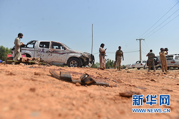 8月25日,在阿富汗賈拉拉巴德市,安全人員在炸彈爆炸襲擊現(xiàn)場(chǎng)調(diào)查。 新華社發(fā)(薩菲 攝)
