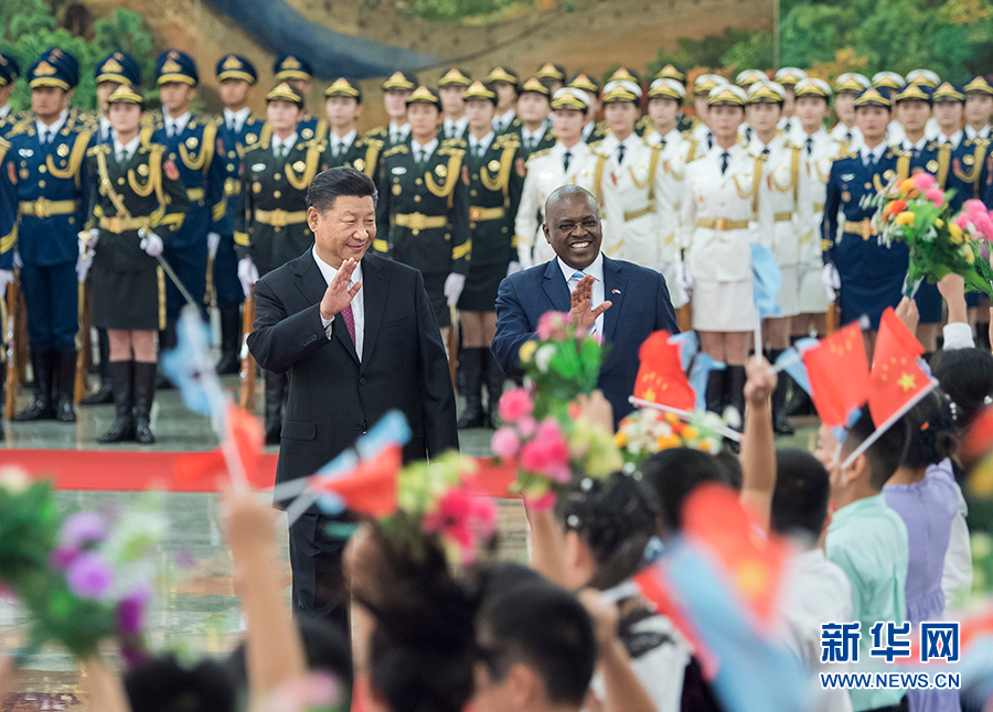 8月31日,國家主席習近平在北京人民大會堂同博茨瓦納總統(tǒng)馬西西舉行會談。這是會談前,習近平在人民大會堂北大廳為馬西西舉行歡迎儀式。 新華社記者 翟健嵐 攝