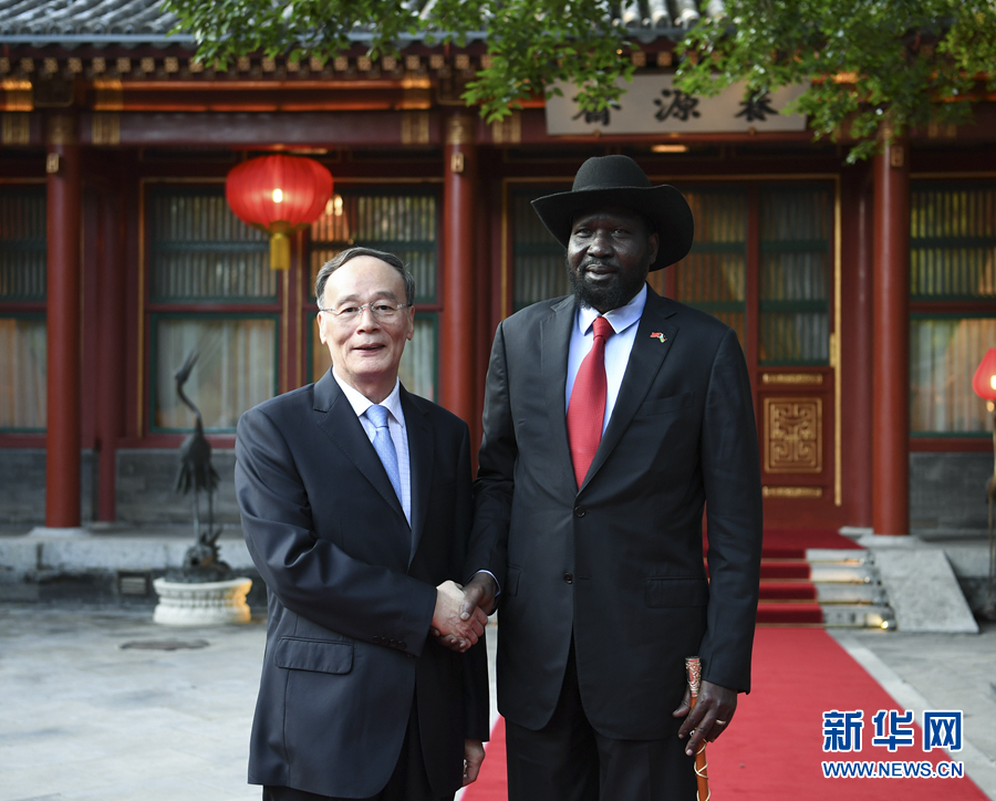 8月31日,國家副主席王岐山在北京釣魚臺國賓館會見來華出席中非合作論壇北京峰會的南蘇丹總統(tǒng)基爾。新華社記者 高潔 攝