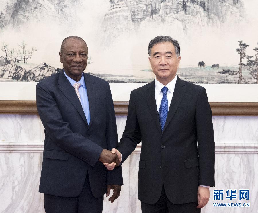 9月1日,全國(guó)政協(xié)主席汪洋在北京釣魚臺(tái)國(guó)賓館會(huì)見(jiàn)幾內(nèi)亞總統(tǒng)孔戴。 新華社記者王曄攝