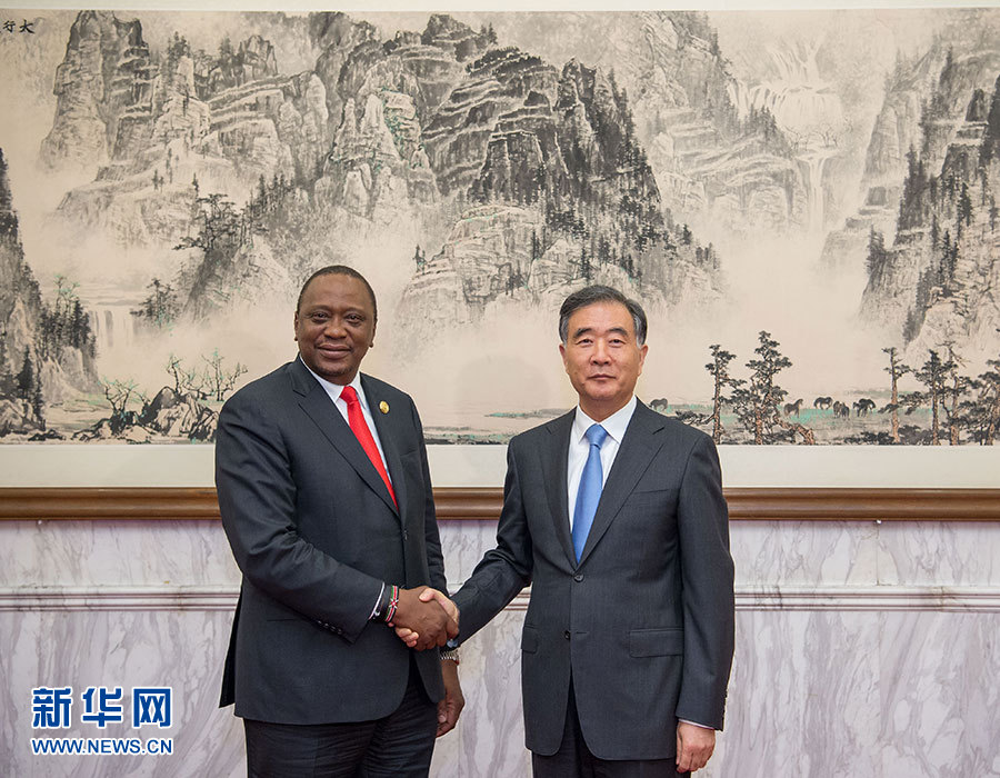 9月4日,全國(guó)政協(xié)主席汪洋在北京釣魚(yú)臺(tái)國(guó)賓館會(huì)見(jiàn)肯尼亞總統(tǒng)肯雅塔。 新華社記者 翟健嵐 攝