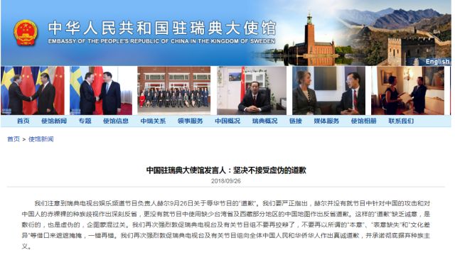 我們注意到瑞典電視臺(tái)娛樂(lè)頻道節(jié)目負(fù)責(zé)人赫爾9月26日關(guān)于辱華節(jié)目的“道歉”。我們要嚴(yán)正指出,赫爾并沒(méi)有就節(jié)目中針對(duì)中國(guó)的攻擊和對(duì)中國(guó)人的赤裸裸的種族歧視作出深刻反省,更沒(méi)有就節(jié)目中使用缺少臺(tái)灣省及西藏部分地區(qū)的中國(guó)地圖作出反省道歉。這樣的“道歉”缺乏誠(chéng)意,是敷衍的,也是虛偽的,企圖蒙混過(guò)關(guān)。我們?cè)俅螐?qiáng)烈敦促瑞典電視臺(tái)及有關(guān)節(jié)目組不要再狡辯了,不要再以所謂的“本意”、“表意缺失”和“文化差異”等借口來(lái)遮遮掩掩,一錯(cuò)再錯(cuò)。我們?cè)俅螐?qiáng)烈敦促瑞典電視臺(tái)及有關(guān)節(jié)目組向全體中國(guó)人民和華僑華人作出真誠(chéng)道歉,并承諾徹底摒棄種族主義。
